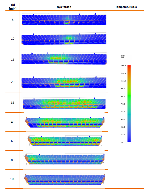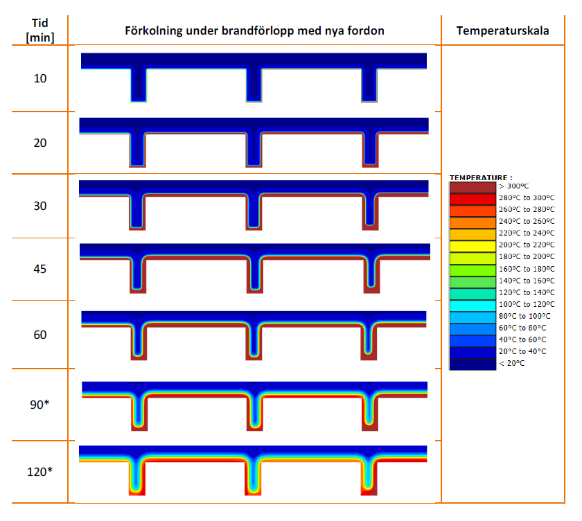 Övergripande illustration av brandspridning i parkeringshus med nya fordon