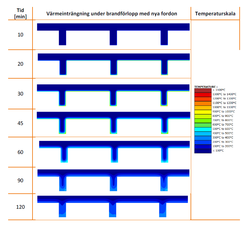 Översiktlig värmeinträngning i betongtvärsnitt med brandpåverkan ifrån nya fordon